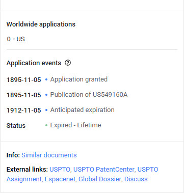 Brevet US n° 549 160