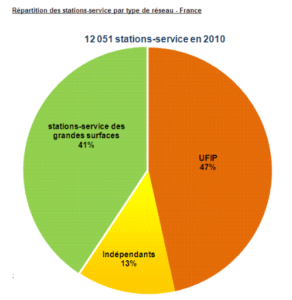 On peut constater que 5663 stations services sont gérées par des sociétés pétrolières, 1448 par des indépendants et 4940 par des enseignes de grandes et moyennes surfaces (soit 40 % des 12 051 stations en France). Ces dernières ont fourni 60,8 % du carburant vendu dans l’Hexagone, contre seulement 12 % en 1980, selon l’Union française des industries pétrolières (Ufip). Dans le même temps, les stations des groupes pétroliers ou/et les indépendants ont vu leur part chuter de 88 % à l’époque à 39 % en 2011.