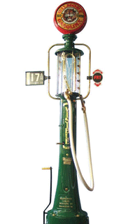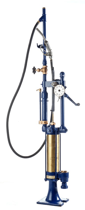 [tabby title= »Pompes »] BOWSER Pompe à essence «RED SENTRY» modèle 241, brevetée en 1911 et 1914. Pompe numéro G8789, de 1915 : peinte en rouge, pied en fonte avec portes s’ouvrant sur le mécanisme à manivelle, les portes avant et arrière portant le sigle « Auto Filling Station », l’intérieur des portes appliqué avec des décalques Red Crown…