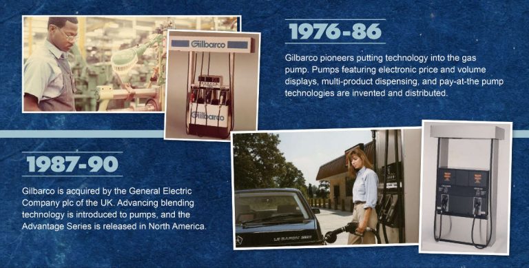 Gilbarco est pionnier des technologies concernant la pompe à essence (1976-1986). Des pompes comportant des affichages électroniques du prix et du volume, des technologies de distribution multi-produits et de paiement à la pompe sont inventées et commercialisées.
