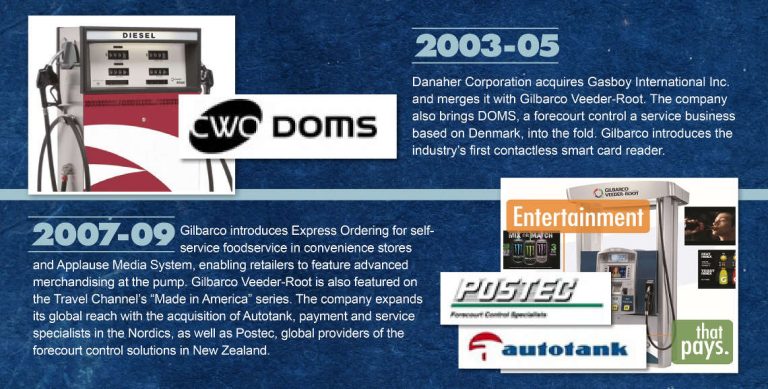 2003 sera l’année de l’acquisition, par Danaher Corporation, de Gasboy International Inc. (« Gasboy ») à Tokheim Inc []. Ses activités seront délocalisées à Greensboro (siège mondial), en Caroline du Nord, et fusionnées avec Gilbarco Veeder-Root. L’usine qui si trouve sera présentée dans « Made In America » de The Travel Channel, en 2008.