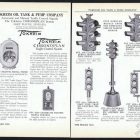 - Première pompe à essence électrique connue utilisant un débitmètre et une buse de distribution (pistolet) à tuyau souple intégrée sous la forme d’un poteau de signalisation routière (la «Triune Electric Filtered Gasoline Pump», 1913-1916) ;