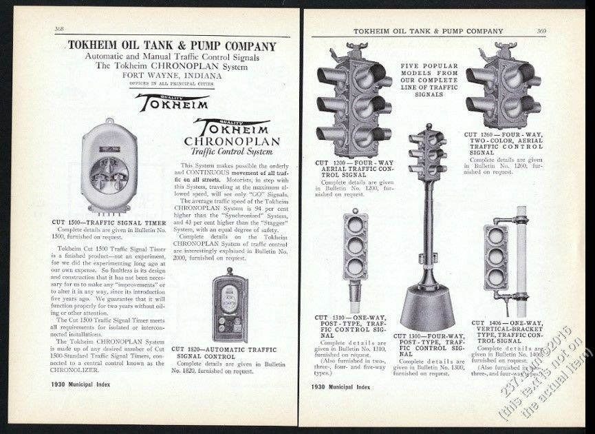 Dans les années 20 et 30 TOKHEIM OIL TANK & PUMP COMPANY à également fabriquée des feux de signalisation routière.