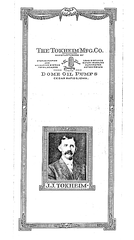 Bien que « The Tokheim Company » soit une entreprise familiale entièrement contrôlée par M. et Mme J.J. Tokheim et leur fille, c’est M. Tokheim qui en sera le génie créateur, et tous les brevets et inventions sont le fruit de son esprit ingénieux. « The Tokheim Company »n’a plus aucun lien avec la société « Tokheim Oil Tank and Pump Company » de Ft. Wayne, dans l’Indiana.