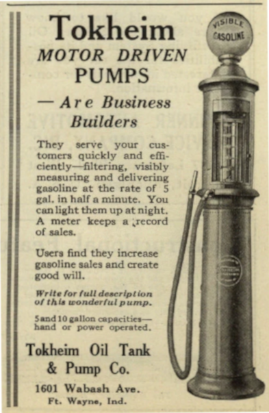 Tokheim fut l’une des nombreuses entreprises à avoir commencé la production de cette gamme de produits à Fort Wayne, faisant de cette ville, pendant de nombreuses années, la capitale mondiale de la fabrication de pompes à essence.