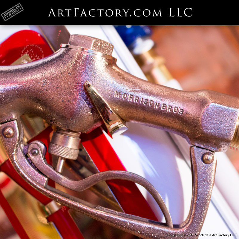 Pompe Fry visible « Mae West », modèle 117R, 1910 (https://mancave.artfactory.com/product/fry-5-gallon-visible-gas-pump/)