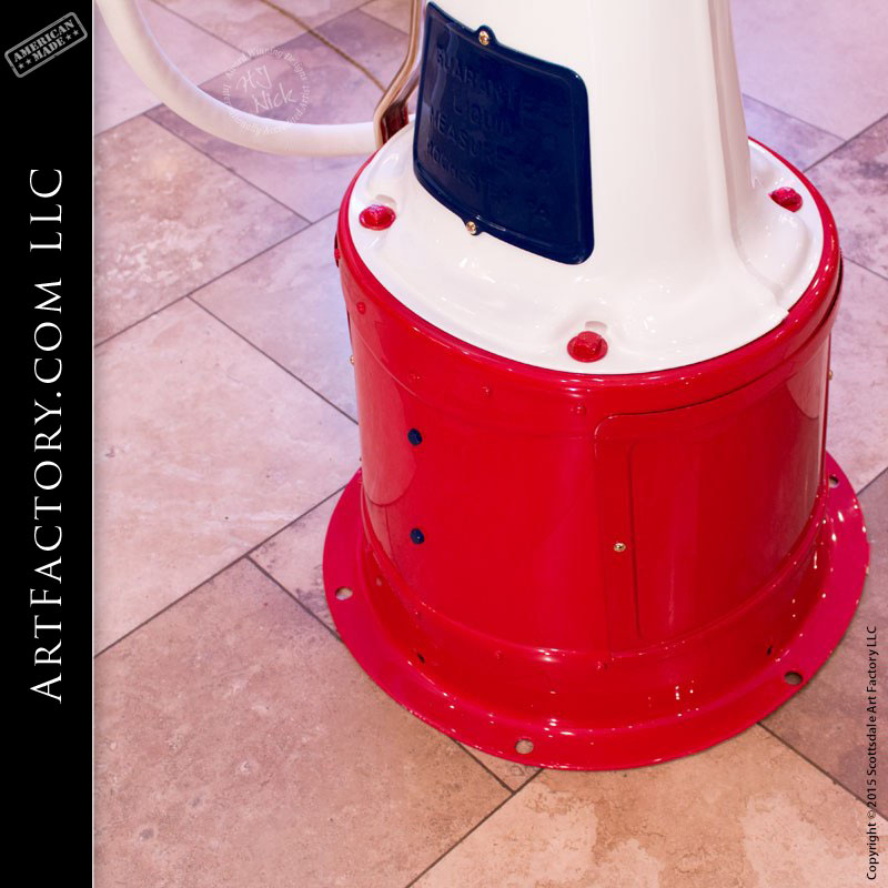 Pompe Fry visible « Mae West », modèle 117R, 1910 (https://mancave.artfactory.com/product/fry-5-gallon-visible-gas-pump/)