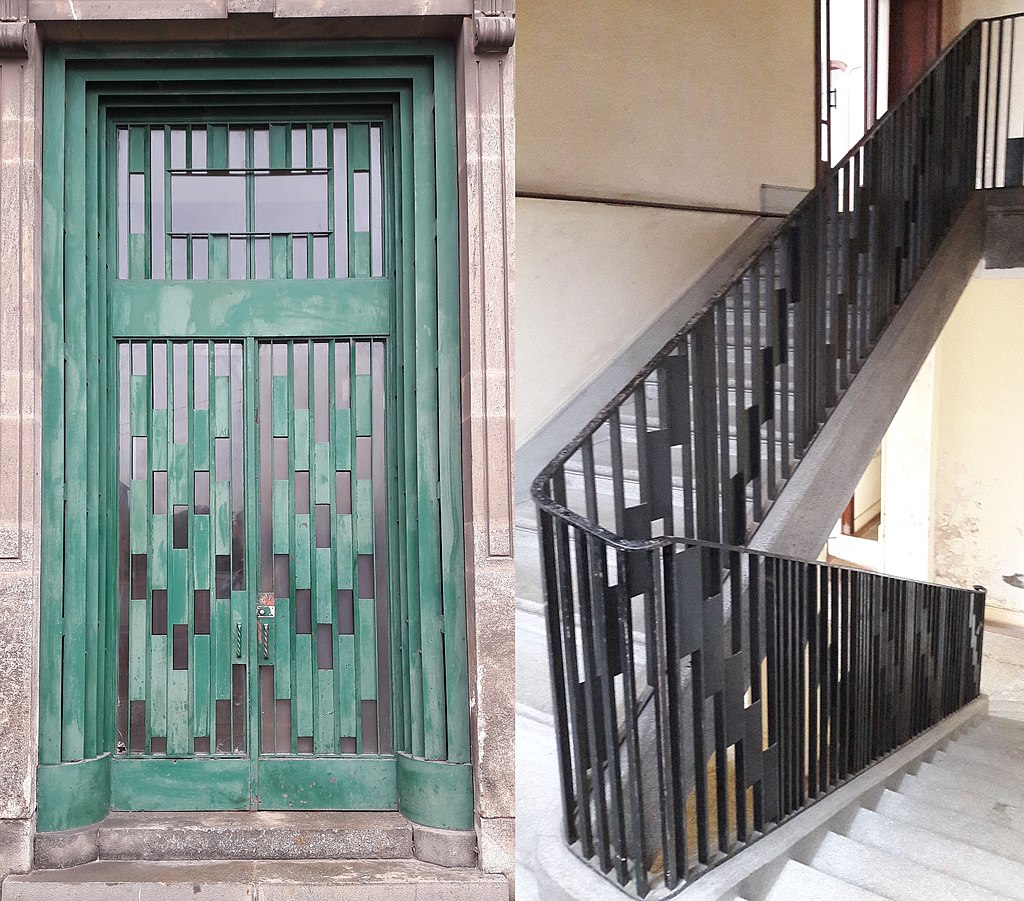 Ses premières réalisations sont des ferronneries pour des édifices privés : hôtel Thiers de Nancy, devantures de magasins parisiens.