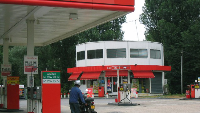 C’est le dessinateur Serge Binotto, qui va donner forme à la station-service circulaire de Total. Cela devient partie intégrante de l’image de marque de la compagnie énergétique. Le concept est totalement révolutionnaire, la station multiservices est née avec son restaurant, ses produits en vente…, l’idée de permettre à l’automobiliste et ses passagers de se restaurer et faire de petits achats en faisant le plein d’essence, est née.rdv