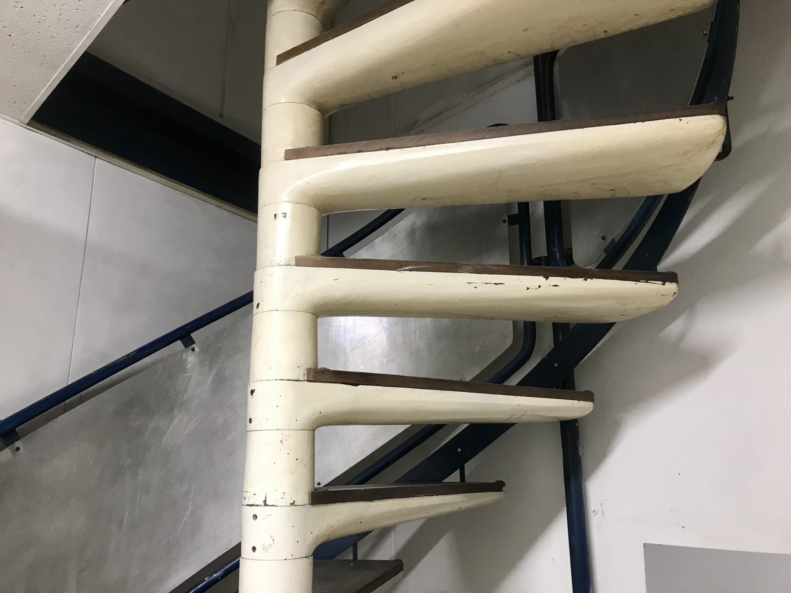 Au premier étage, auquel on accède par un escalier hélicoïdal de bois et de métal encore très préservé : un appartement, de la même surface, conçu pour y loger le pompiste et sa famille. Celui de Sainte-Marthe, encore percé des fenêtres originelles, rectangulaires aux bords arrondis, n’est plus habité depuis belle lurette. Au premier, une fois la belle volée de marches patinées gravie, il règne une chaleur intense.mactu