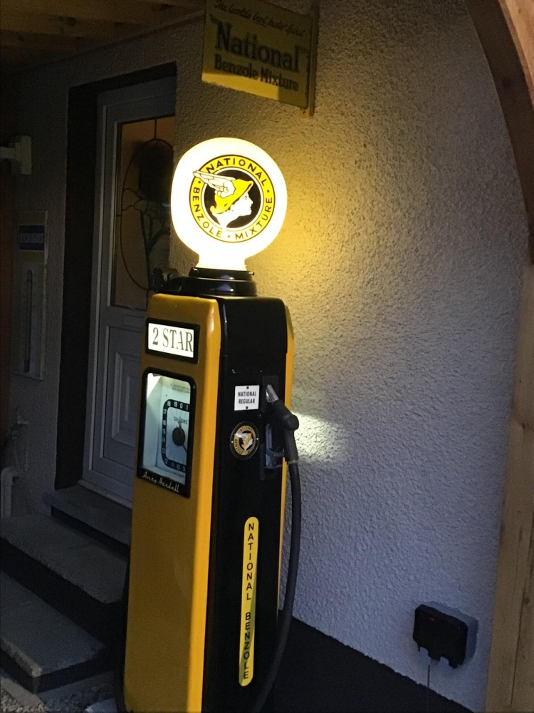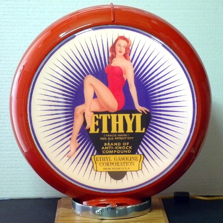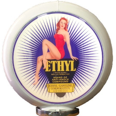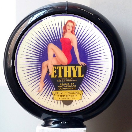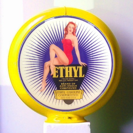 Globe(s) de confection moderne. Il n’y avait surement pas de globe « ETHYL » à l’époque, ceux-ci reprenant le plus souvent la marque de la station ou du pétrolier.
