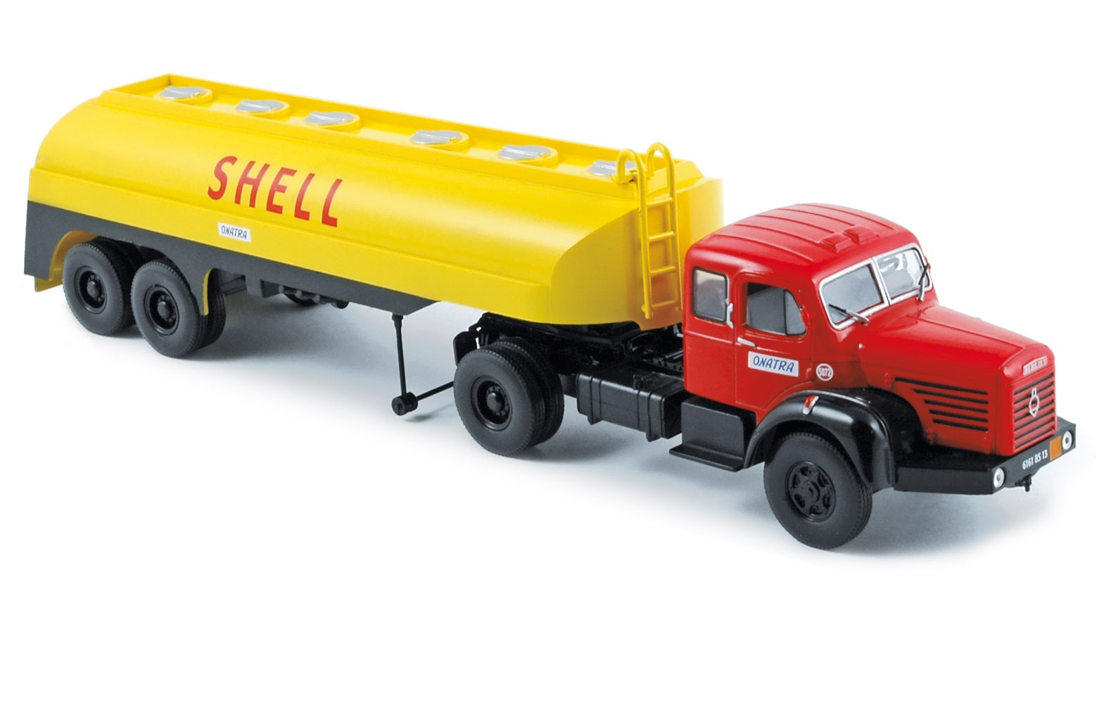 A l’ échelle 1/55, ce véhicule de ravitaillement a fière allure avec ses décalcomanies à l’enseigne de la Standard Oil et sa bande blanchetrès réaliste courant le long de la citerne. Le pare-chocs, décoré à l’argenture, porte la marque du fabricant Titan. La remorque est relié au tracteur par un système d’attache inamovible qui laisse apercevoir la rampe d’accrochage.