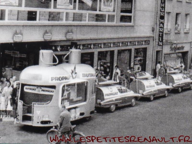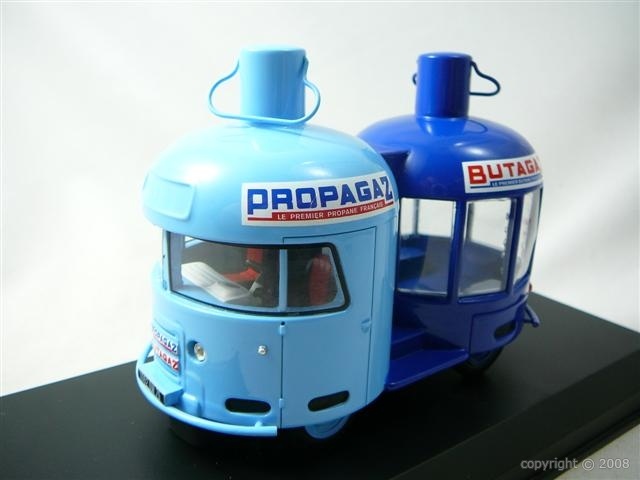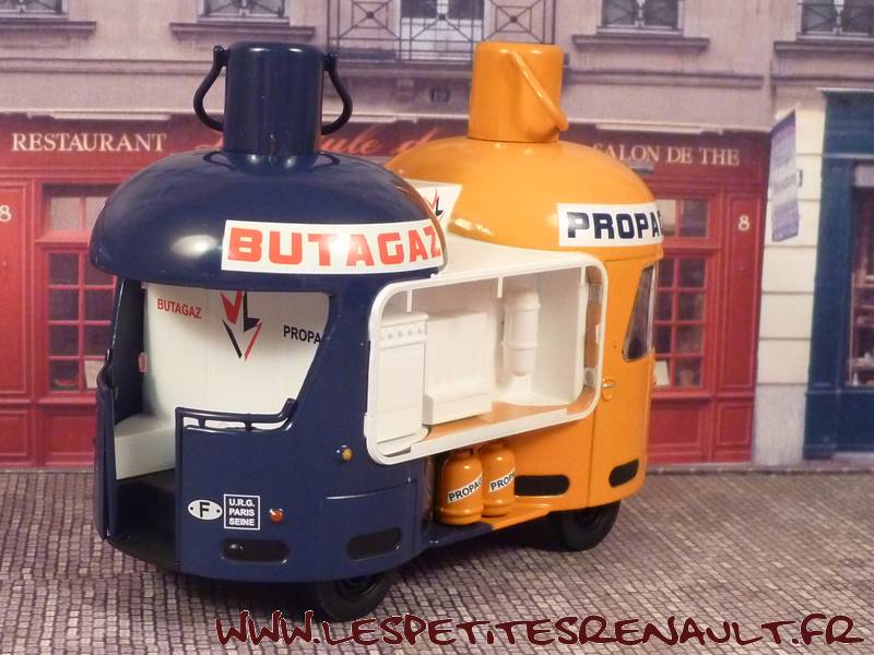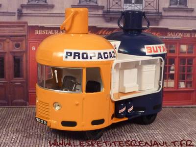 Renault 1400 Kg Butagaz, 1954 (Ixo) Modèle destiné au Tour de France entre 1954 et 1960. Véhicule avec les couleurs de la première série, d’autres véhicules similaires viendront ensuite mais avec des bouteilles en 2 tons de bleus.