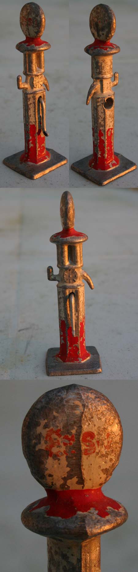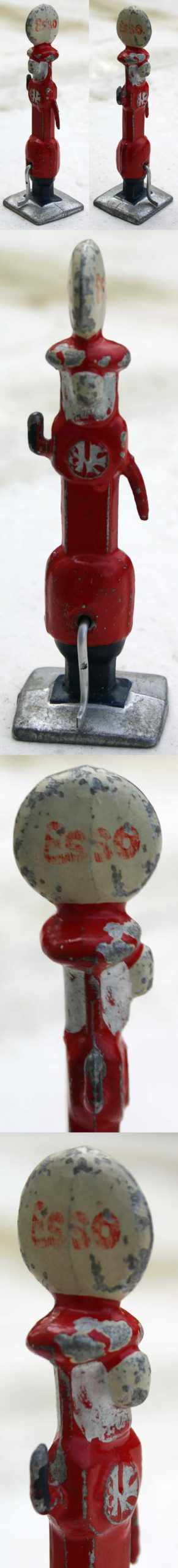 Le sigle Esso du panneau est peint. Ceux des globes sont en décalcomanie.