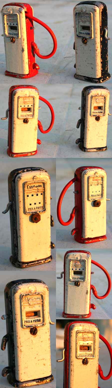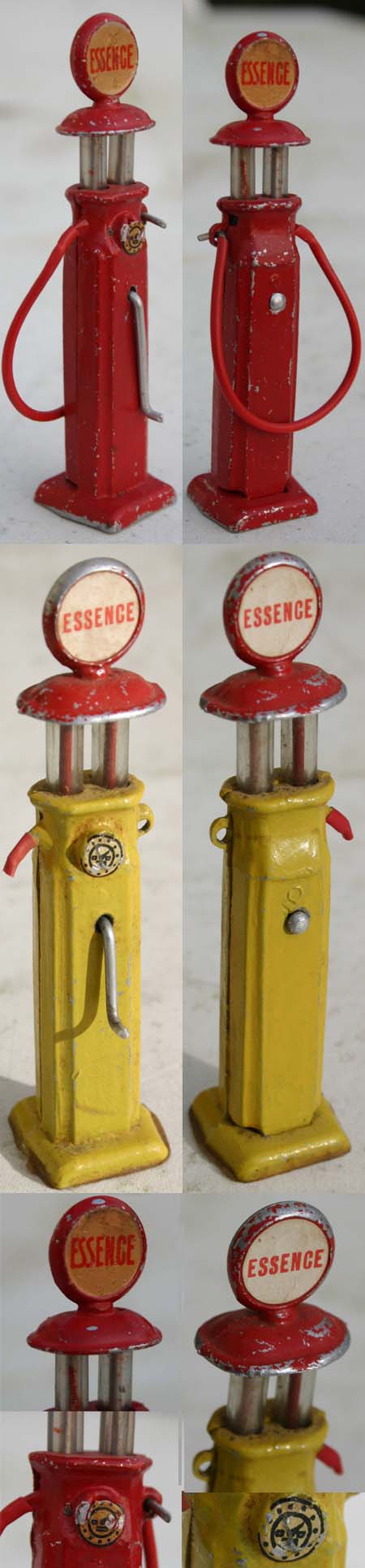 Les deux pompes, respectivement aux couleurs de Esso et Esso Extra sont démontables du socle. Le panneau central et son mat le sont également.