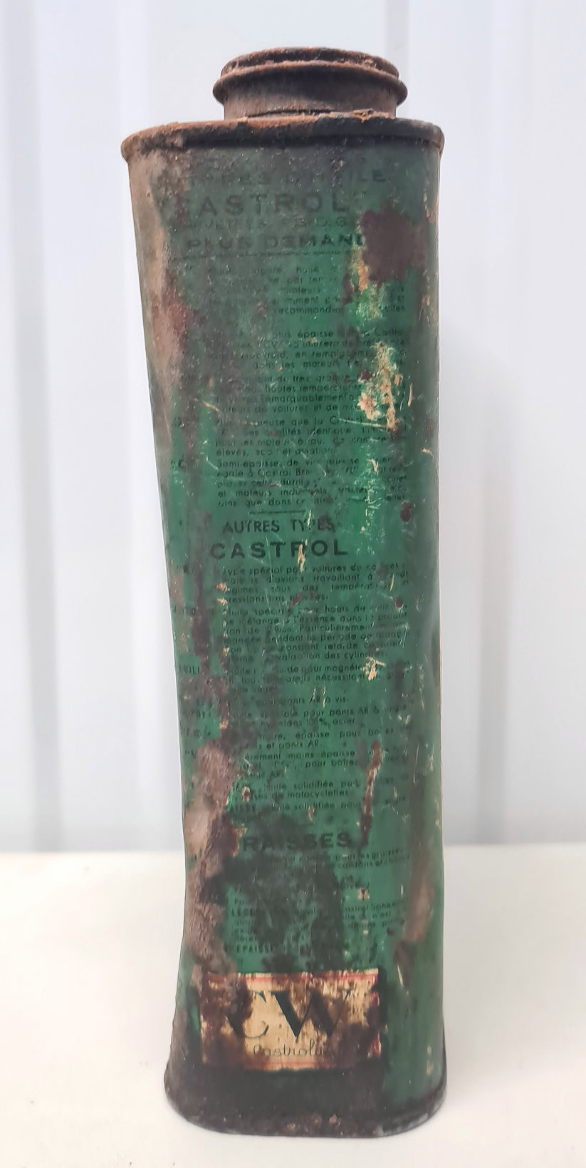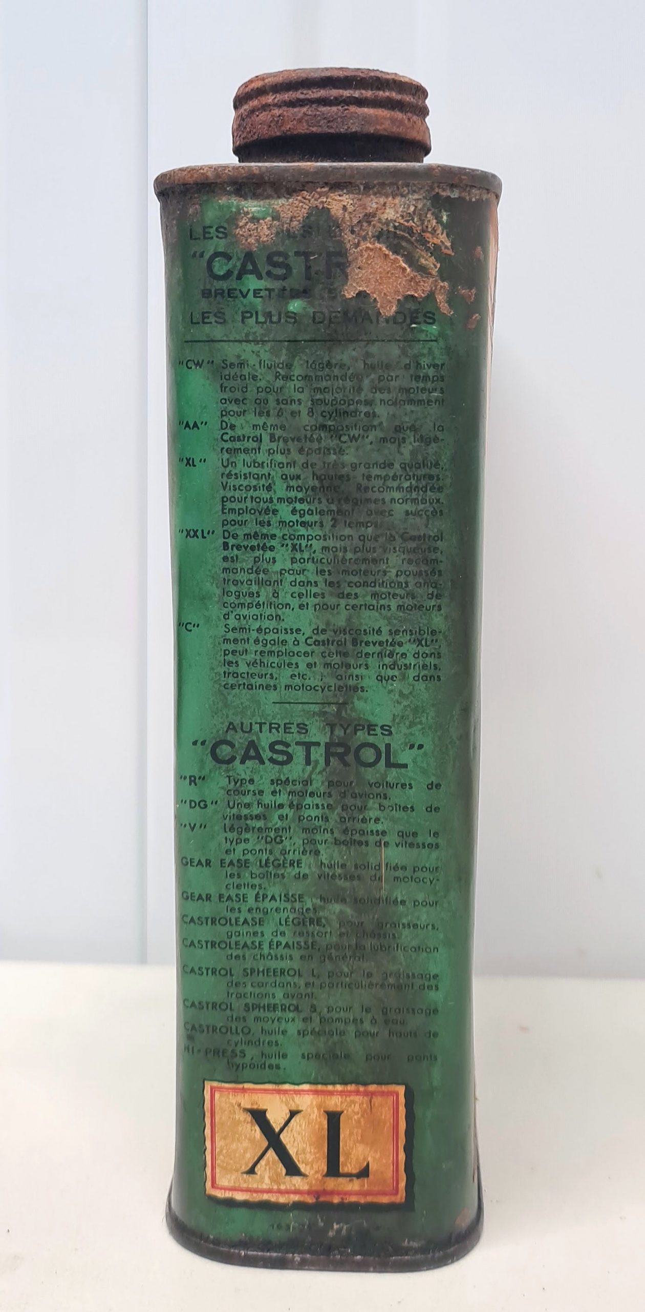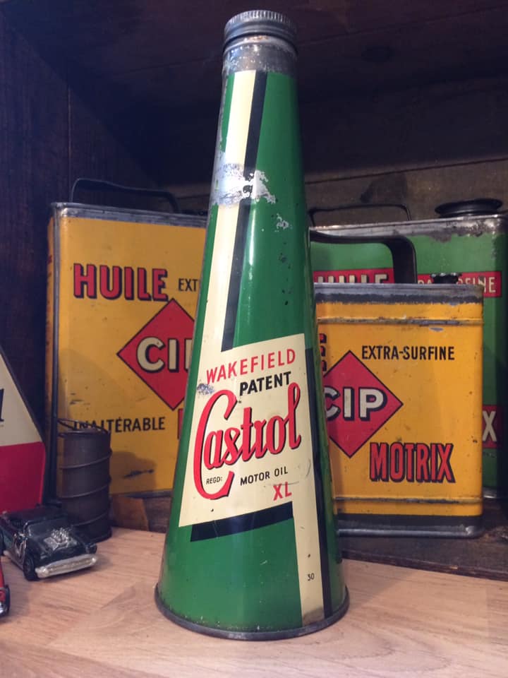 - Ce bidon d’huile Castrol date des années 1940 ;