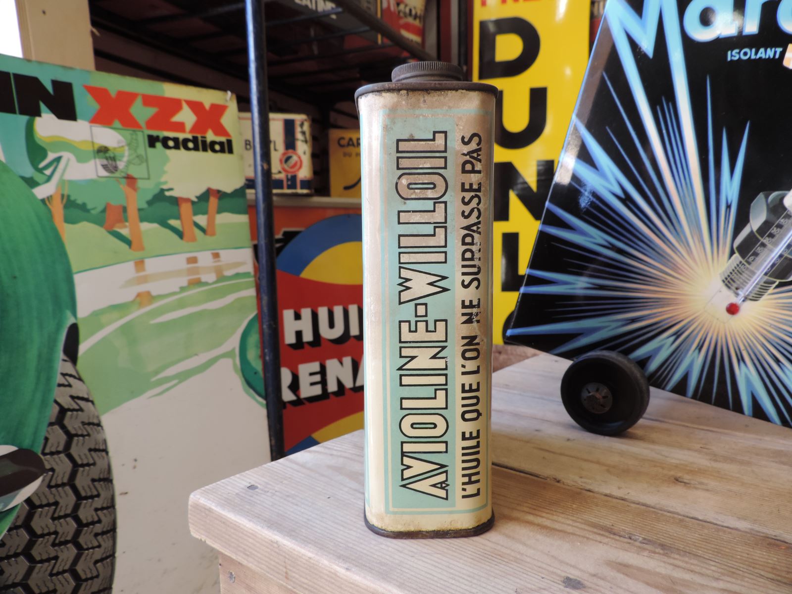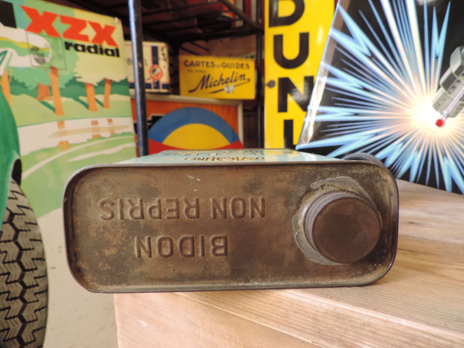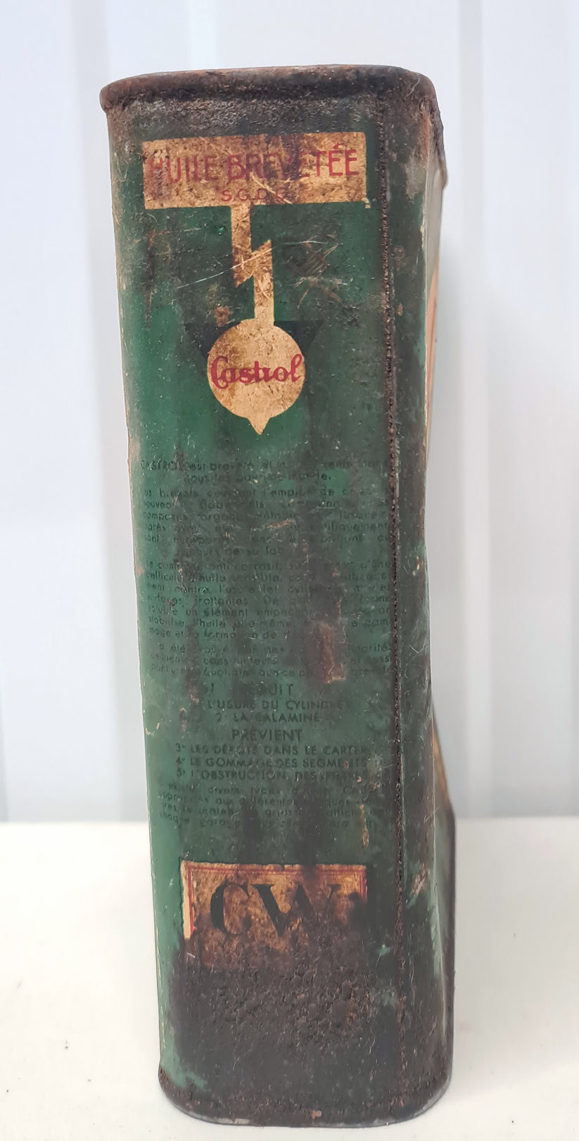 - Ce bidon d’huile Castrol date des années 1940 ;