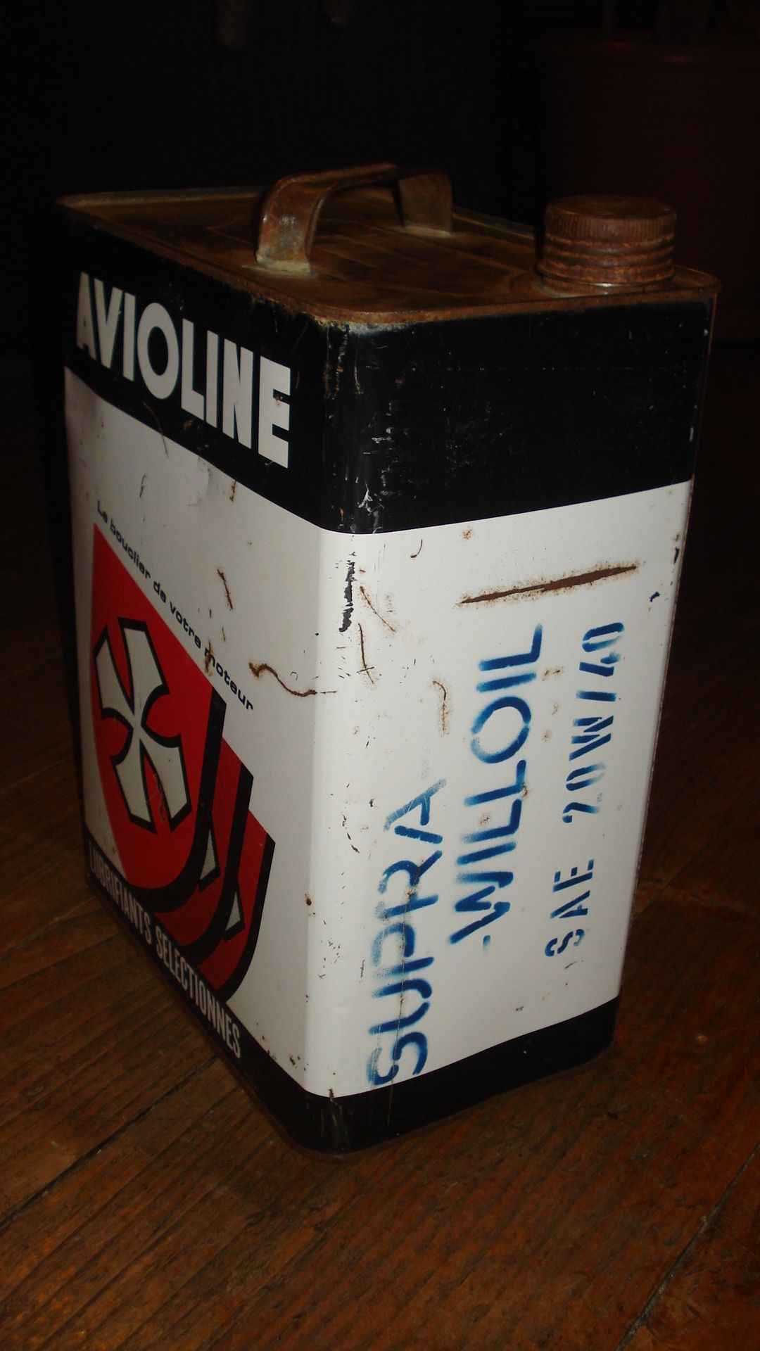 Bidon d’huile « Antar SAE » (rouge et blanc)
