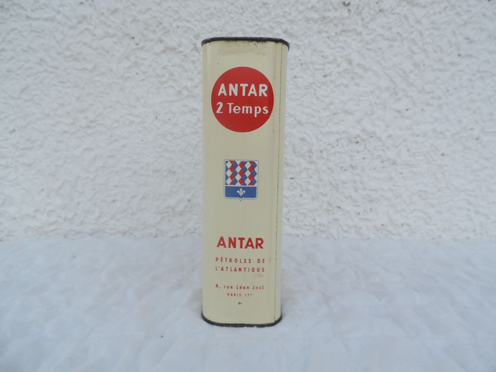 Précisions inscriptions : ANTAR (sous la blason). ANTAR ROULEMENT 3? (autocollant situé en-dessous). ANTAR (en face sous le blason). ANTAR PETROLES DE L’ATLANTIQUE, 4, Rue Léon-Jost – Paris 17è (en-dessous).