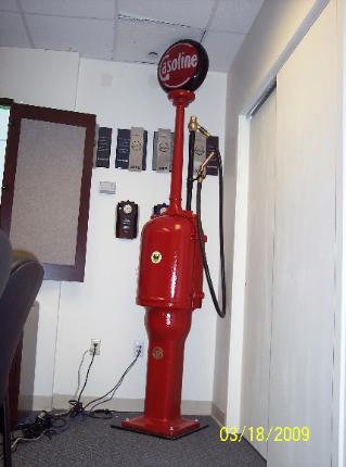 Livrée neuve à Old Street Garage, Clevedon et faisant partie de la famille depuis cette pompe manuelle a été restaurée au cours de l’hiver 2014-2015 par le gang régulier du lundi. Il est très lourd, fabriqué principalement en fonte, et une l’objet d’une réflexion approfondie sur la meilleure façon de la présenter. « Un grand merci à Dennis Nichols et à son équipe pour leur travail dans la restauration de cette pompe à essence. »